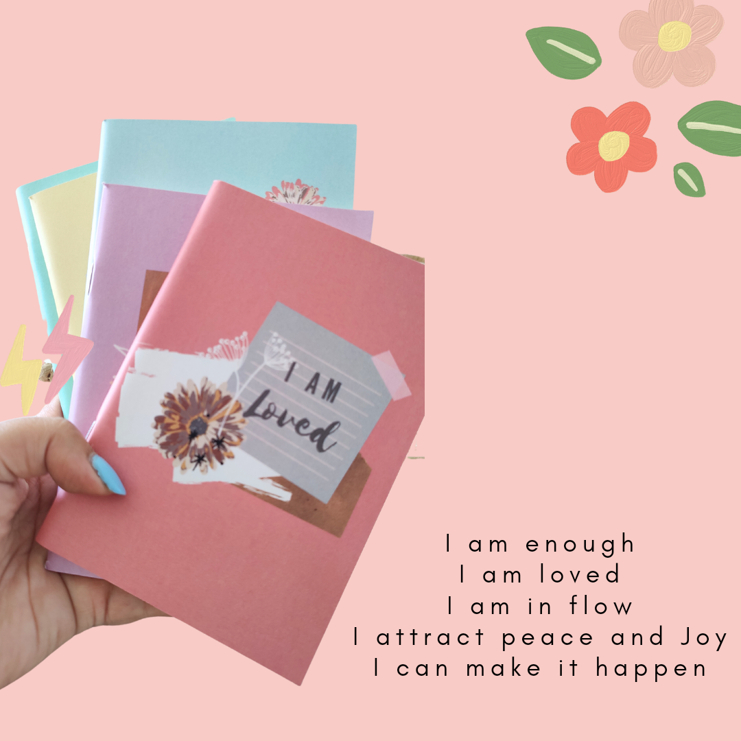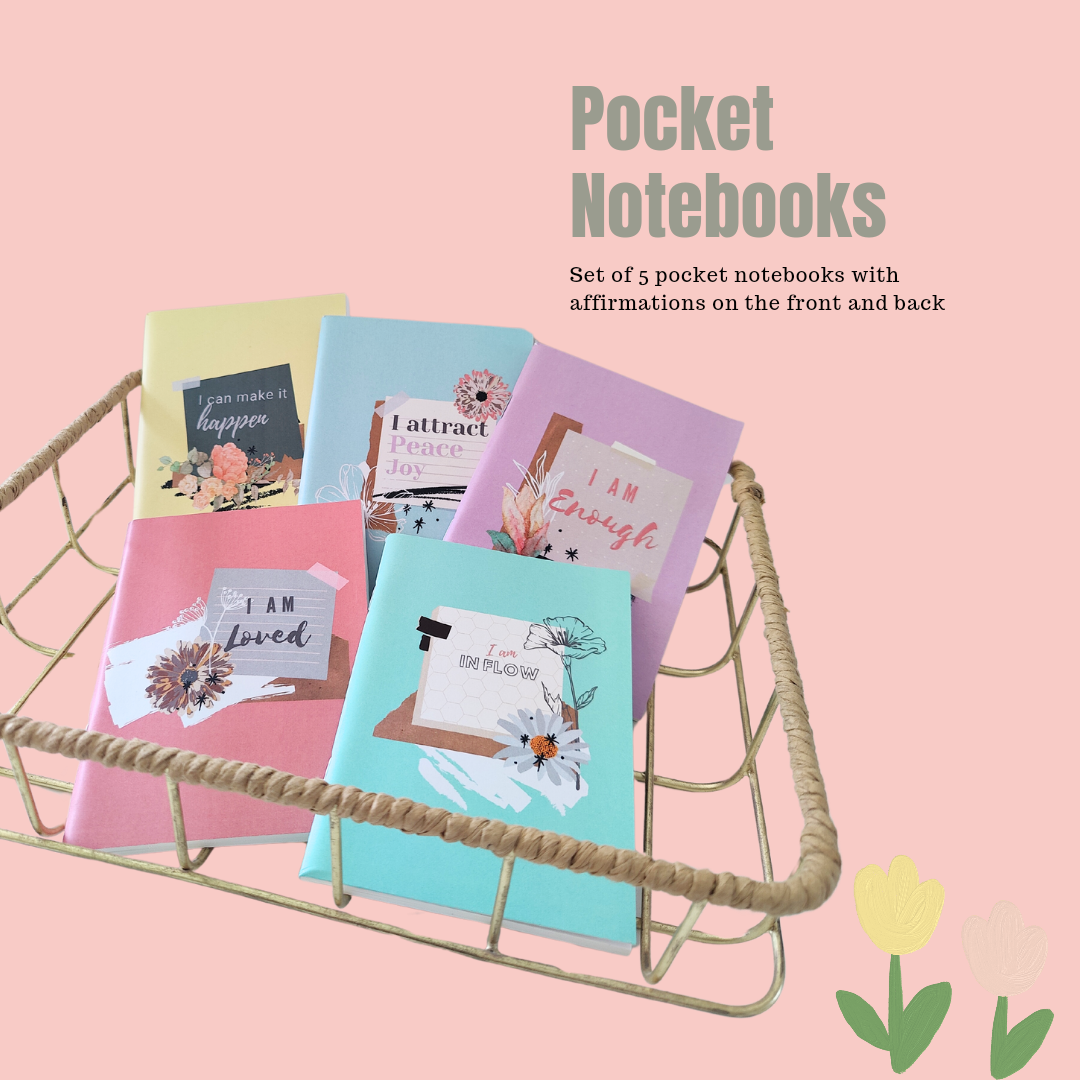 Set of 5 pocket notebooks with affirmations on the front and back